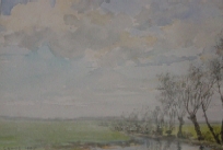 Een realistisch Hollands landschap met een mooie wolkenpartij.